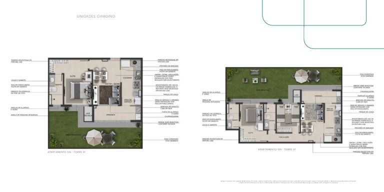 Opções com área privativa (garden)